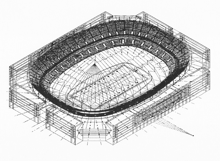 A computer building model for concept design of a stadium. Presentation drawings and animations were created.